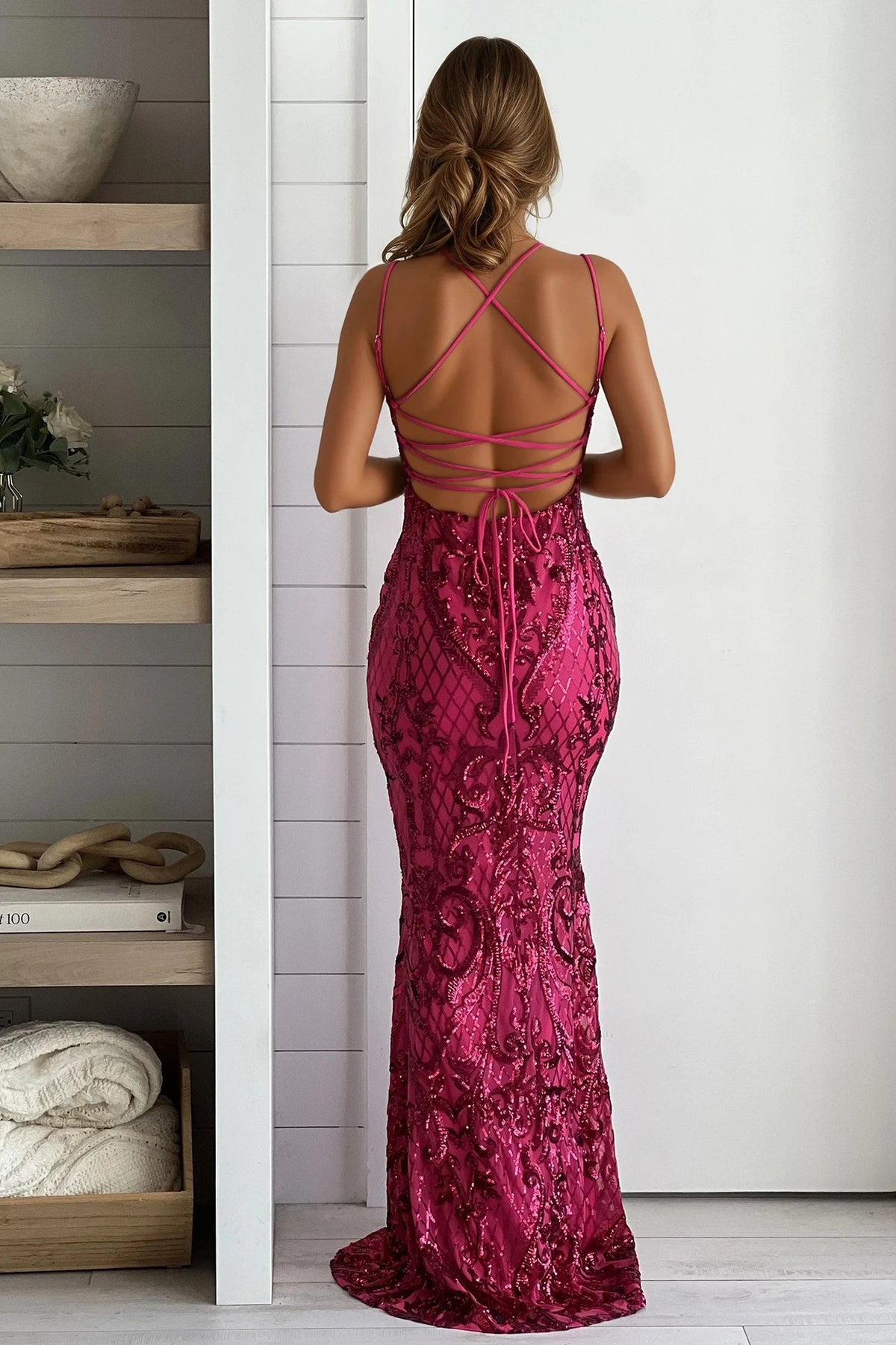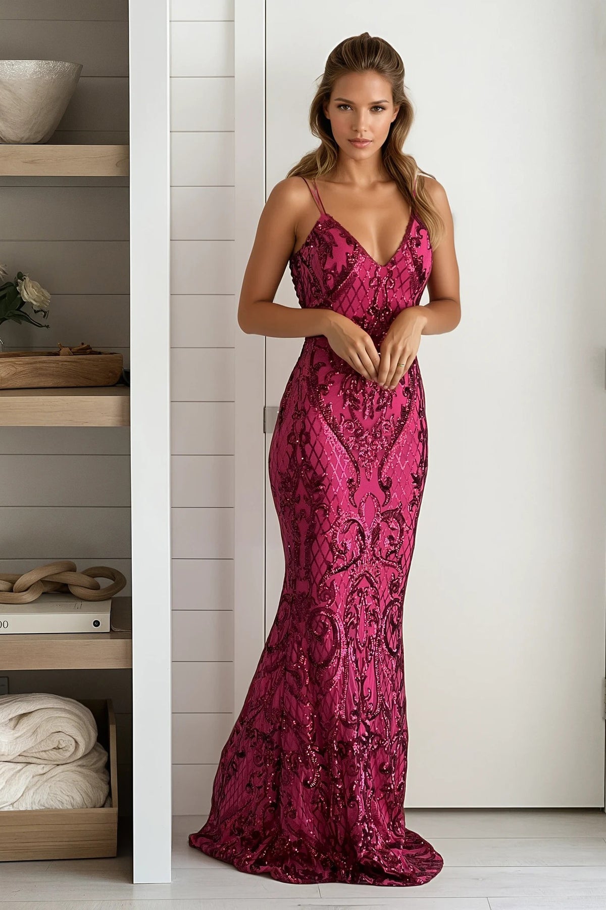 We’re obsessed with this show-stopping Hot Pink Sequin Mermaid Maxi Dress, now available at our online boutique. Featuring striking black sequin detailing and a sleek mermaid silhouette, this formal maxi is made to turn heads at any special occasion.